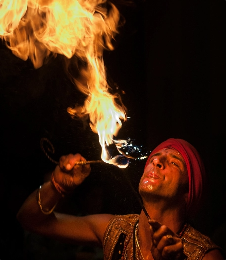 We perform with real fire in our hands.